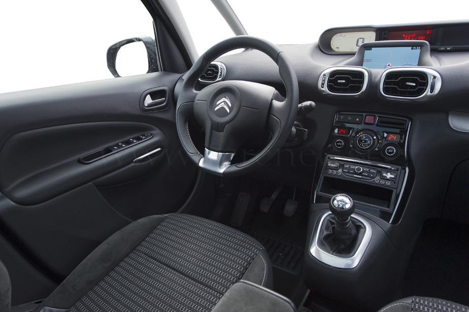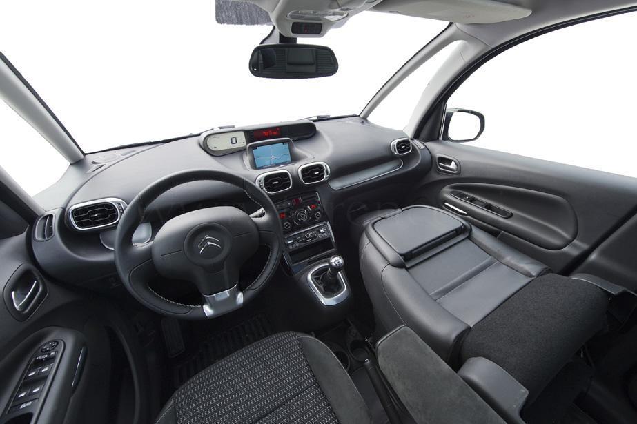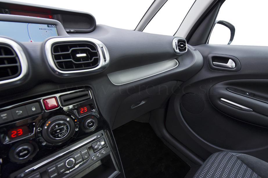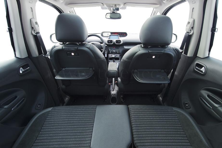 Kljub temu, da C3 Picasso v dolžino meri le 4.101 mm, je v notranjosti zelo veliko prostora, ki se ga da prilagoditi našim potrebam, poleg tega pa je tudi veliko odlagalnih mest. Zgornji del sovoznikovega sedeža lahko preklopimo v isto višino kot sedeže v prtljažnem prostoru in s tem pridobimo prostor za prevoz daljših kosov. Zadnjo klop lahko podremo v dveh razmerjih (1/3 ali 2/3). Prav tako nam C3 Picasso ponuja dve možnosti višine dna prtljažnega prostora. Prtljažnik C3 ima dvojno dno in z njim lahko povečamo globino prtljažnega prostora ali pa poravnamo dno s podrto zadnjo klopjo. Na zadnji strani voznikovega in sovoznikovega sedeža je za dolge poti, ko sopotniki radi kaj preberejo, nameščena polička in bralna lučka.