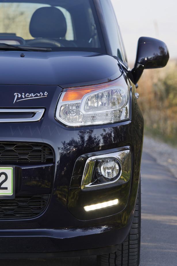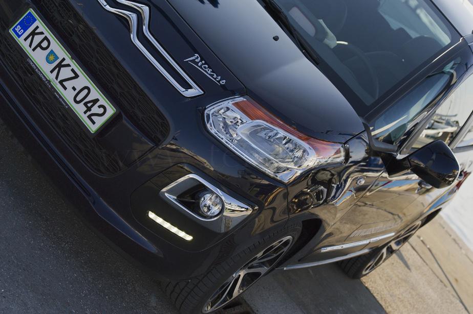 Citroen C3 Picasso s svojo navihano, moderno, privlačno zunanjostjo vzbuja veliko zanimanja na cesti. Z vsemi svojimi dodatki, kot so kromirani dodatki na sprednjem-zadnjem delu vozila, LED žarometoma na sprednjem odbijaču, prednjim delom vozila s kromiranim Citroenovim znakom pred pokrovom motorja – vse to so koščki Citroenovega mozaika, ki tvorijo skupno podobo privlačnosti. Na zadnjem delu se sveti sklop zaobljenih luči, za dobro vidljivost iz vozila pa poskrbi veliko zadnje vetrobransko steklo.