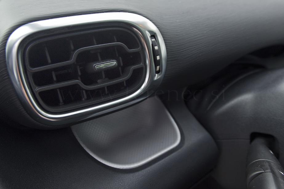 Pri Citroenu so poskrbeli, da se tudi v njihovem “malčku” zelo udobno sedi tako na sprednjih kot tudi na zadnjih sedežih. Sprednja sedeža sta ergonomsko oblikovana in ravno pravšnje velikosti, da nam nudita dobro oporo na krajših in daljših poteh. Med sedežema se nahaja naslon za roko, ki ga lahko nastavljamo po višini in tako vozniku in sovozniku omogočimo več udobja med vožnjo. V zadnji klopi se nahaja ročica, ki nam omogoča, da tudi na zadnjih sedežih uravnavamo naklon sedenja.