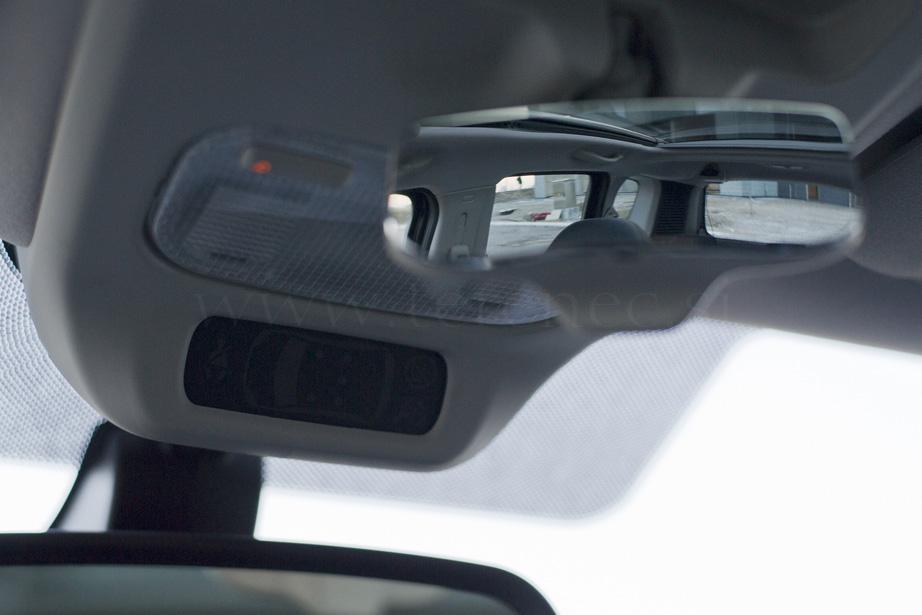 Ob pogledu v nebo nas na stropu pozdravi veliko panoramsko vetrobransko steklo v velikosti 1,15 m2, ki ga lahko z dvojnima premičnima zavesama po izbiri zapremo.