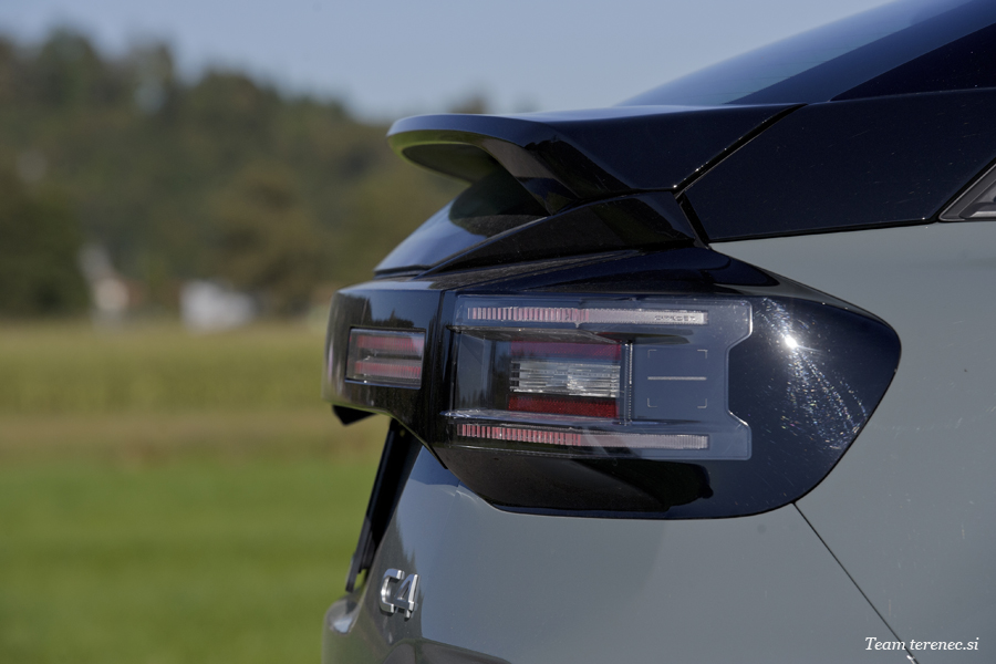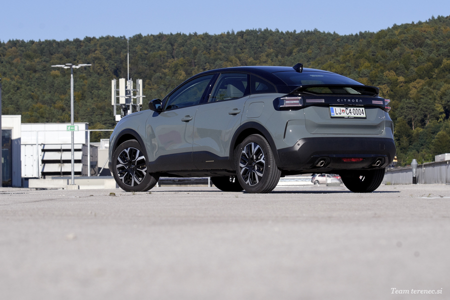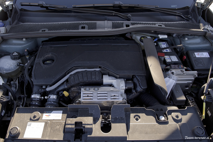 Citroën je za C4 ponudil tri pogonske sklope, in sicer klasični bencinski motor prostornine 1,2 litra s 131 konjskih moči, hibridni pogonski sklop v kombinaciji bencinskega in elektromotorja, ki imata skupaj 145 konjskih moči, ali pa popolnoma električno izvedenko s 136 ali 156 konjskimi močmi. Po podatkih WLTP naj bi bila poraba goriva okoli 4,7 litra na sto kilometrov, a to bo v praksi zelo težko doseči. Nam se je poraba v običajnem voznem ciklu gibala med 5,2 in 5,7 litra na sto kilometrov, kar je še vedno precej varčno. Iz nič do sto kilometrov na uro rabi osem sekund, najvišja hitrost, ki jo doseže, pa je 210 kilometrov na uro. Največ prednosti pridobimo v mestni vožnji, kjer lahko sistem izkorišča električno energijo. Z enim polnjenjem rezervoarja lahko naredimo več kot 800 kilometrov.