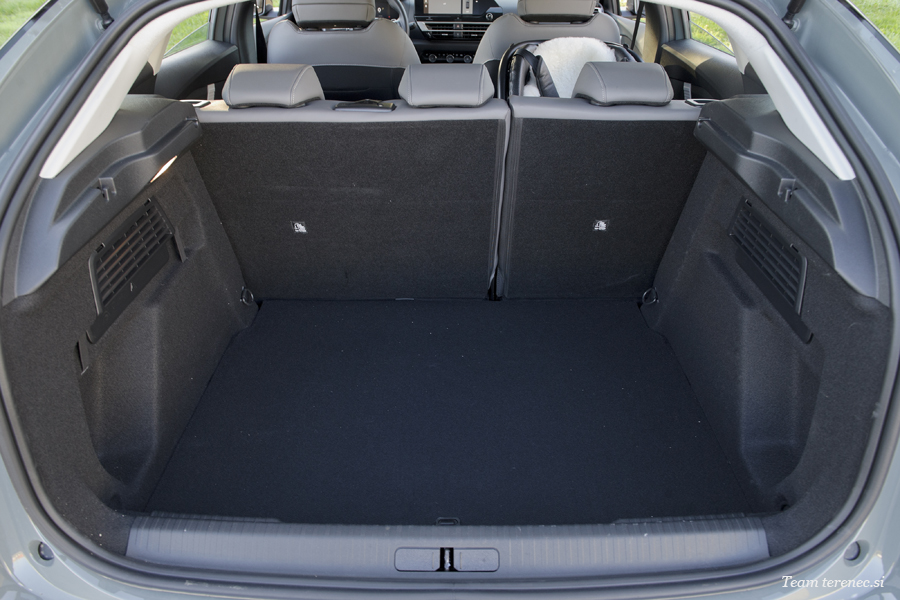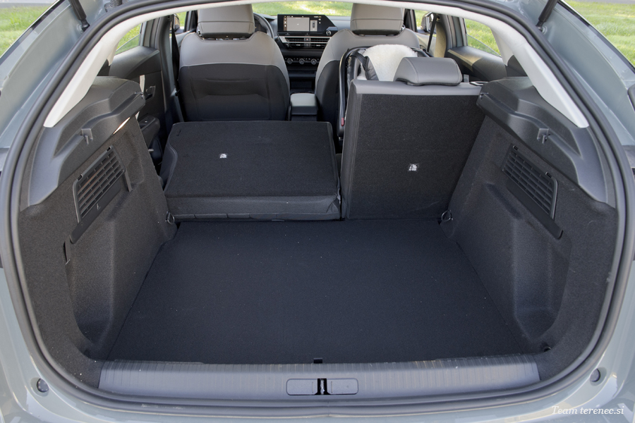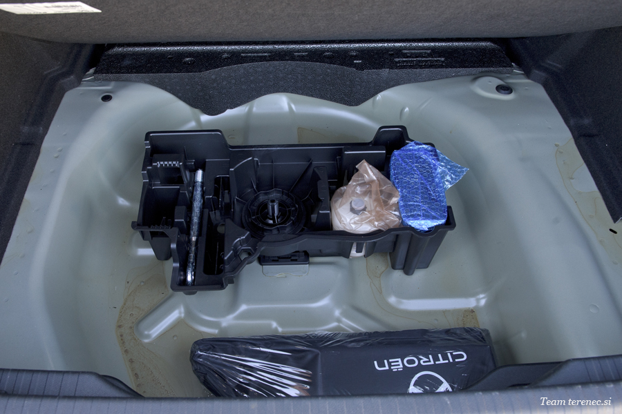 Prtljažno dno je enojno in pod njim je več uporabnega prostora za shranjevanje kompleta za prvo pomoč, trikotnika ipd. Običajno je v novih vozilih to vedno problem, kam to pospraviti, da nam mi v napoto, a pri C4 ni teh težav. Prtljažni prostor meri 380 litrov in se po podrtju zadnje klopi poveča na 1.250 litrov. Klop je deljiva v razmerju 60:40. Ko odpremo prtljažna vrata, je nakladalni rob višji, prav tako pa pri podrtih zadnjih sedežih nastane stopnička.