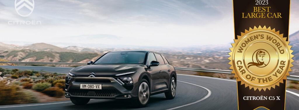 - Žirija Svetovni avto leta po izboru žensk (WWCOTY– Women’S World Car of The Year) je letos izbrala Citroëna C5 X kot zmagovalca v kategoriji »veliki avto«. Model C5 X je bil na evropski trg lansiran leta 2022, že v drugi polovici lanskega leta pa je zasedel vodilno mesto med limuzinami v segmentu D.