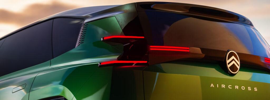 Na zadnjem delu je črna okrasna letev na prtljažnih vratih umeščena zelo visoko, da je vozilo resnično hitro opazno in videti širše. Oblikovalci so ohranili tritočkovni svetlobni podpis, vendar so ga posebej za ta model na novo interpretirali. Njegova arhitekturna zasnova je spektakularna. Dve svetlobni točki sta ločeni od stranske letve karoserije in zdi se, da lebdita kot dve plavuti na boku vozila. Ta sklop imenujemo Citroën Light Wings.  S svojim nadvse izvirnim položajem pomaga usmerjati zračni tok in upravljati zapleteno aerodinamiko na tem delu vozila.