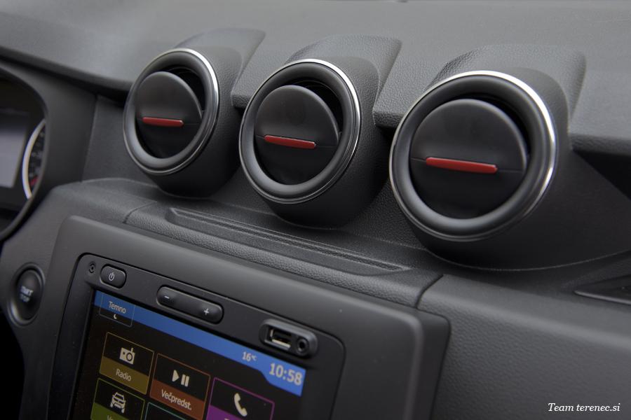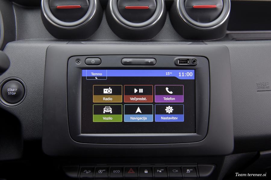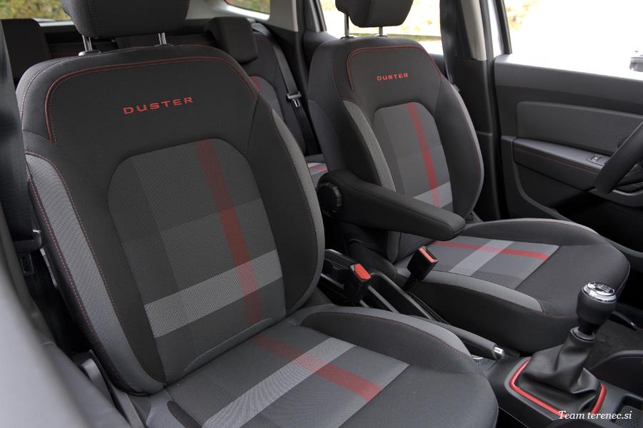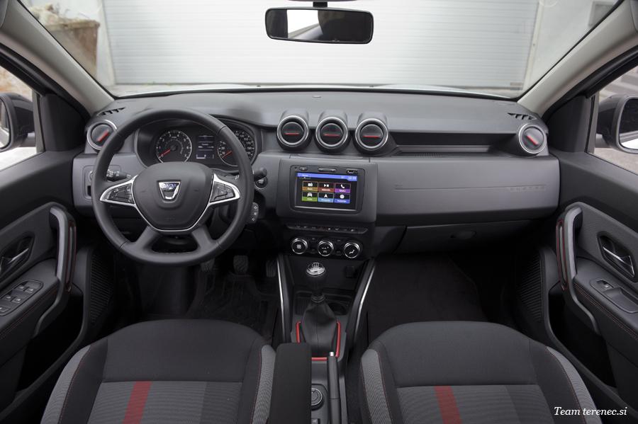 Novi Duster je največ prenov doživel v notranjosti. Med prvimi našimi najljubšimi novitetami so popolnoma novi voznikovi števci in nova armatura, ki je bolj razgibana. 7-palčni zaslon na dotik so za nekaj stopinj bolj obrnili proti vozniku za boljši pogled in lažje upravljanje. Multimedijski sistem je nove, torej tretje generacije, ki je opremljen s kartografijo Adriatic, z radijem, USB priključkom, dodatnim programom za Off Road vožnjo, povežemo z Android Auto ipd. Klimatska naprava je avtomatska.