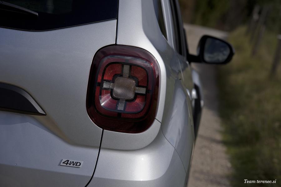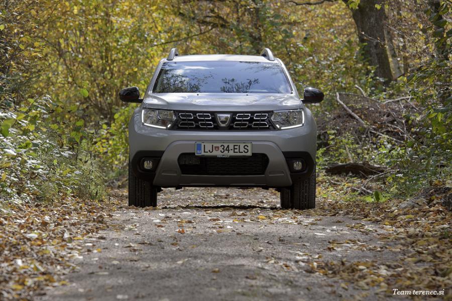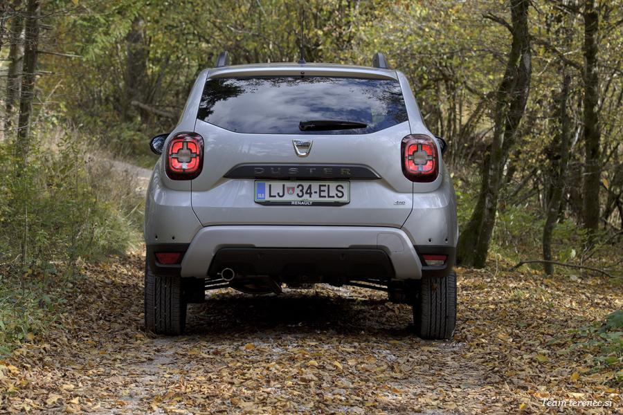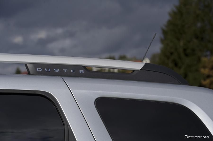 Duster je s prenovo postal dovršen in lepši na pogled. Prednji del Dusterja je popolnoma nov. Vgradili so mu dnevne LED luči, žarometi ostajajo halogenski, a svetijo dosti bolje od prejšnje generacije. Nov je odbijač in nove so meglenke ter reže za zrak motorja. Iz strani je še bolj robusten, saj so mu dodali plastični terenski dodatek na prednji blatnik. Strešni nosilci so preoblikovani in so zaradi poliranega kroma postali vpadljivi. Naše testno vozilo so obuli v največja, 17-palčna lahka platišča. Za Dusterja so pripravili devet barv karoserije, od česar sta dve navadni, ostale so kovinske. Zadaj opazimo nove kvadratne luči, sestavljene iz štirih delov, ki so zamenjale stare, podolgovate luči. Za piko na i sta tu še lepo poudarjena odbijača, katera so dodatno opremili z izpopolnjeno zaščitno plastiko za vožnjo po brezpotjih.