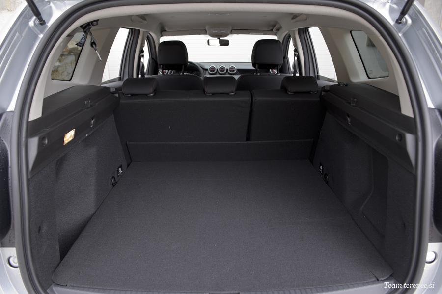 Prtljažnik pri štirikolesnem pogonu meri 376 litrov in pri dvokolesnem pogonu za 11 litrov več. Ko podremo zadnjo klop se poveča na 1.532 litrov. Zadnja klop se podre v razmerju 60:40. Pod prtljažnim dnom je rezervno kolo polne velikosti in okoli njega štiri odlagalna korita. Če izberete veliko rezervno kolo, se bo prtljažnik zmanjšal za 90 litrov.