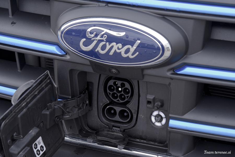 Baterijo lahko polnimo na različnih polnilnicah, sami smo ga največkrat polnili na javnih polnilnicah, ki naj bi polnile z 22 kW, a to je le na papirju. Glede na infrastrukturo javnih polnilnic bi lahko napisali marsikaj, a je škoda besed. Na AC polnilnicah, ki polni do 11,3 kW, je pri Fordu dober rezultat. V kolikor bi ga polnili doma z enofazno elektriko, ga boste lahko čez noč napolnili od 0 % do 100 %. Enkrat smo ga priklopili na ultra hitro polnilnico 350 kW, na katri se odšteje 0,7 €/min (v primeru, da se polni več kot 40 minut, se mora po preteku 40 minut doplačati še dodatnih 0,15 €/min). Sama moč polnjenja se je gibala od 52 do 68,7 kW. Tako polnjenje se vsekakor ne izplača, ker je predrago in si morate omisliti doma oziroma v podjetju polnilnico za hitro polnjenje. Takšno polnjenje je primerno le v nujnih primerih, sicer pa ni dolgoročno ekonomično.