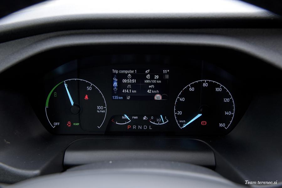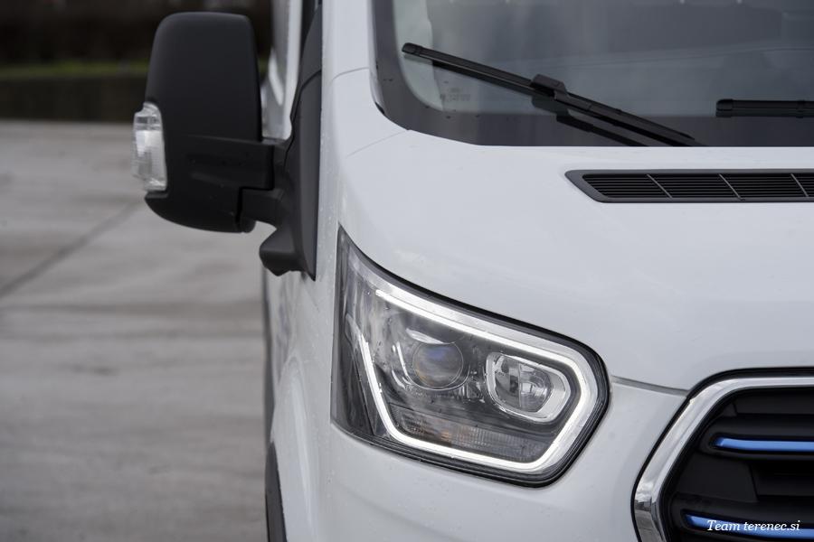 Za E-Transita so na voljo tri različni motorji: dizelski, blagi hibridni-dizelski in popolnoma električni motor. V prvi in tretji različici sta na voljo še dva nivoja moči. Naš testni je imel vgrajen elektromotor s 135 kW (184 konjskimi močmi). Močnejši ima 269 konjskih moči. Ne glede na moč motorja ima E-Transit vgrajeno baterijo s 68 kWh, kar omogoča dobrih 220 prevoženih kilometrov. Sicer po testih WLTP naj bi imel doseg nekaj več kot 300 kilometrov. A kot vsi vemo, je cikel WLTP izdelan v optimalnih pogojih in nekoliko preveč optimističen. V našem tednu vožnje smo v povprečju dosegli nekje v poprečju 220 kilometrov z enim polnjenjem. V mrzlih jutrih ali zimskem času, bo verjetno doseg padel za približno od 40 do 50 kilometrov.