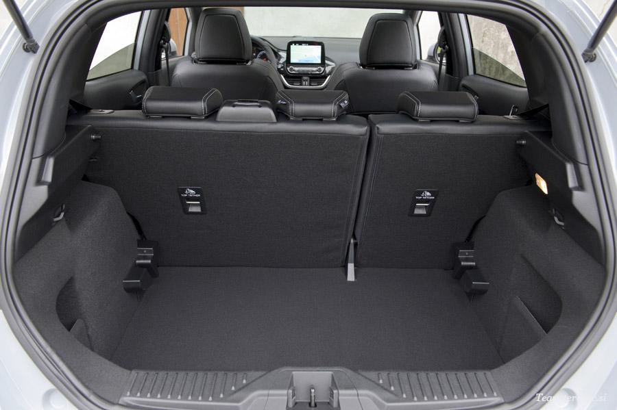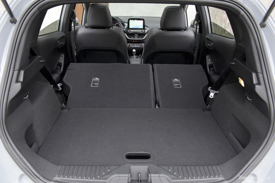 Ford Fiesta ST ni družinski avto, lahko ga imamo za drugi avto, saj prtljažnik ni največji. Pri normalni postavitvi zadnje klopi, ki je deljiva 60:40, imamo 311 litrov prostora, ki se ga lahko poveča na 1.093 litrov. Pohvaliti je treba, da ima športni malček dvojno prtljažno dno, ker ponavadi na ta »bonbonček« pozabijo. Na zadnji klopi sta dve pritrdišči za otroška sedeža in zaradi petih vrat, bo rokovanje enostavnejša.