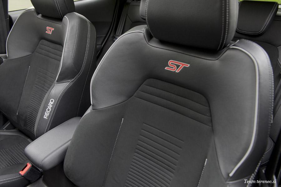Fiesta ST ima odlične vozne lastnosti, ponaša se z dobrim krmiljenjem, odličnim podvozjem in športni sedeži Recaro nas čvrsto »objamejo« kadar vozimo hitro v ovinke. Kljub temu, da je športnik, ima pet vrat, kar pride prav pri vsakodnevni uporabi in uporabi otroškega sedeža na zadnji klopi. Prtljažnik res ni velik, a glede tega z lahkoto zamižimo na eno oko.