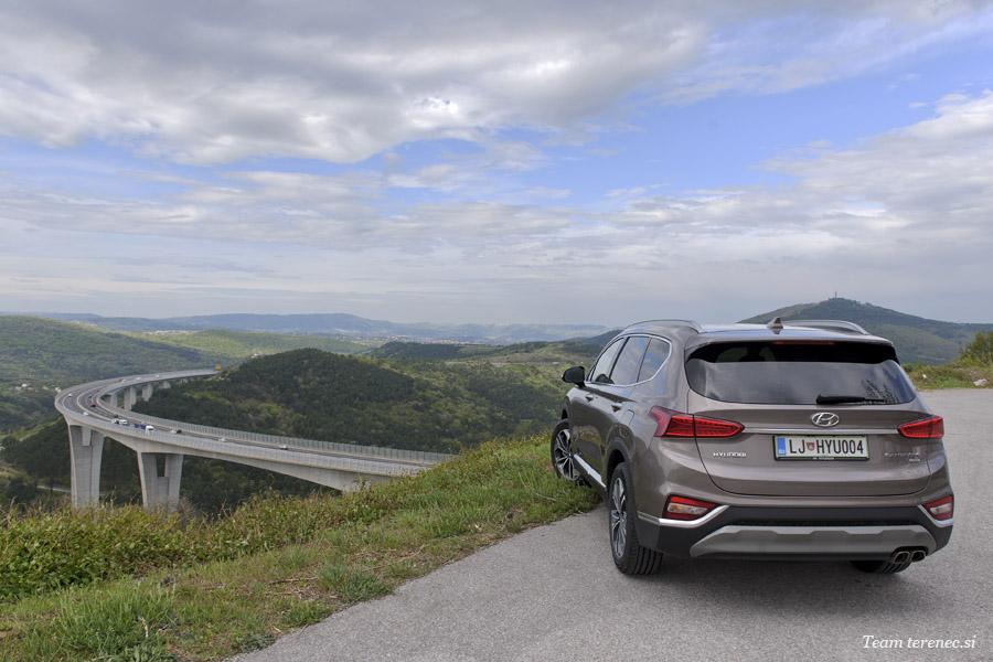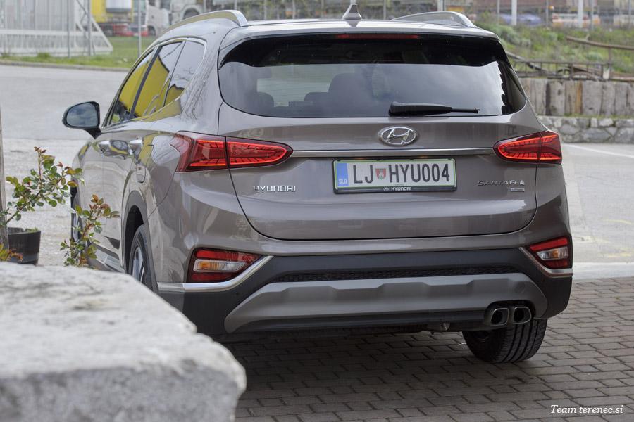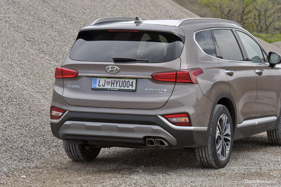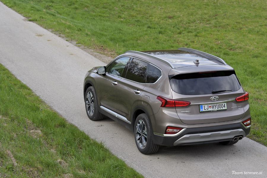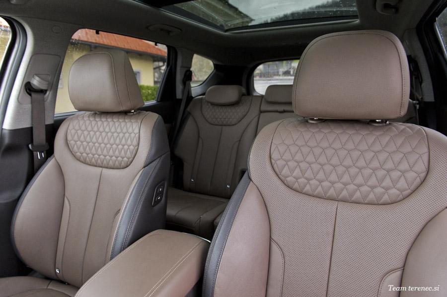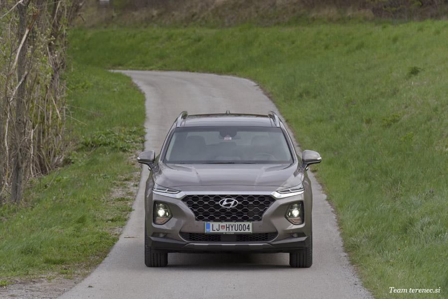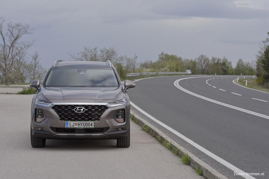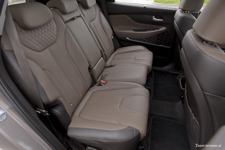 Novi Santa Fe bo odličen spremljevalec na dolgih poteh, saj nudi resnično veliko udobja za vse potnike. Na zadnji klopi je prostora za noge potnikov v izobilju. Klop si lahko nastavljajo po naklonu. Kot je značilno za velike športne terence se sedi visoko, kar zagotavlja veliko preglednost. Imeli smo občutek, da notranjost ni tako zvočno izolirana, kot bi lahko bila. Santa Fe bo verjetno precejšnji del življenja preživel na cesti, a tudi vsi tisti, ki ga bodo zapeljali na kakšno makadamsko, manj zahtevno gozdno pot, ne bodo imeli skrbi. Santa Fe je od tal oddaljen 185 mm, štirikolesni pogon HTRAC pa bo samodejno zagotovil optimalen oprijem koles glede na cestno podlago. V primeru za strm spust imamo še sistem, ki samodejno zavira.