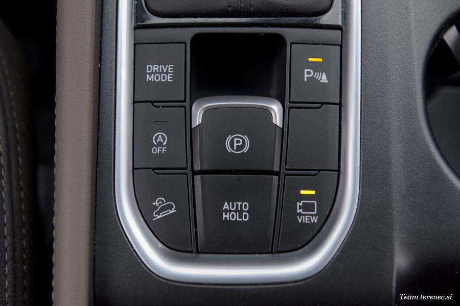 Glede na to, da je Santa Fe velik terenec, so prednji in zadnji parkirni senzorji neobhodno potrebna oprema kot pomoč pri parkiranju, a pika na i je 360 stopinjski sistem, ki prikazuje sliko iz ptičje perspektive, kar vozniku dobro vidno prikaže prav vse ovire okoli vozila.