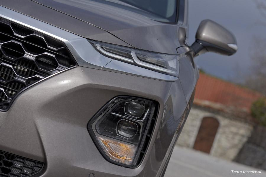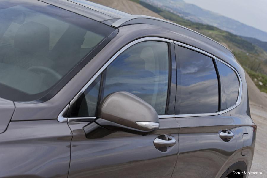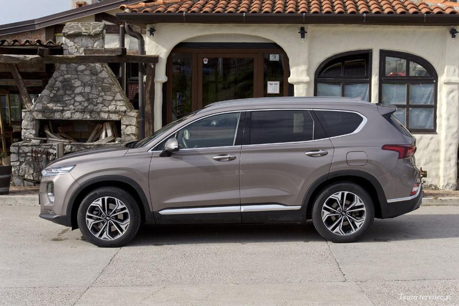 Daljši je za osem centimetrov in tudi precej nižji. Vstopanje v notranjost je zato postalo lažje kot pri prejšnjem modelu, saj so imeli tisti manjše rasti kar nekaj težav. Sami smo to odpravili z namestitvijo stranske stopnice. Novi Santa Fe je v notranjosti zelo dovršen, sodoben in zgrajen samo iz najboljših materialov. Nudi obilico udobja, prostornosti in uporabnih sistemov. Precej koristen je sistem, ki voznika ali potnika zadaj opozori na prihajajoče vozilo, da v tistem trenutku ne odpremo vrat ali celo stopimo iz avta pred vozilo. Odličen je tudi nov osem stopenjski samodejni menjalnik v povezavi s dizelskim motorjem prostornine 2.2-litra. Z večjim številom prestav se sedaj vozimo pri hitrosti 130km/h pri 2.000 vrtljajih, kar pomeni za okoli 350-400 vrtljajev manj kot pri prejšnjem modelu.