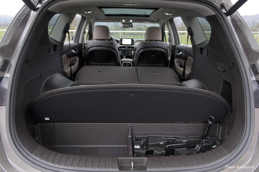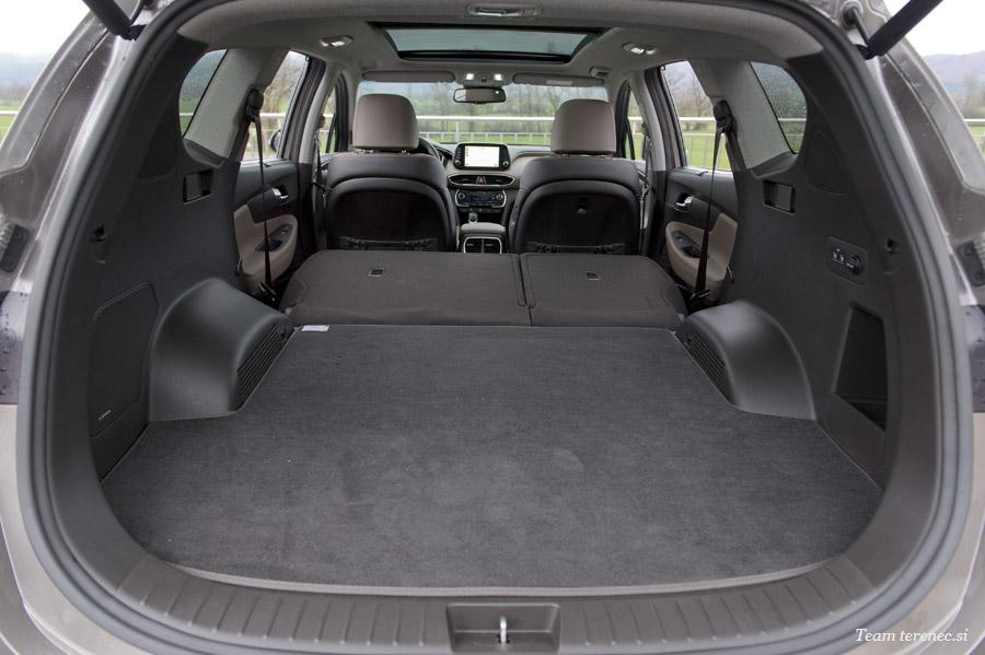 Prtljažni del se je od prejšnje izvedenke povečal za 40 litrov, kar na prvi občutek ni veliko, v praksi pa se pozna. Prtljažnik je lepe pravokotne oblike, kar pomeni, da bo precej uporaben pri večji količini prtljage. Novi Santa Fe nima več tako visoke potniške kabine kot nekoč, s tem pa izgubi precejšnji del uporabnega prtljažnika. V prejšnji različici smo lahko peljali kolo v pokončnem položaju.