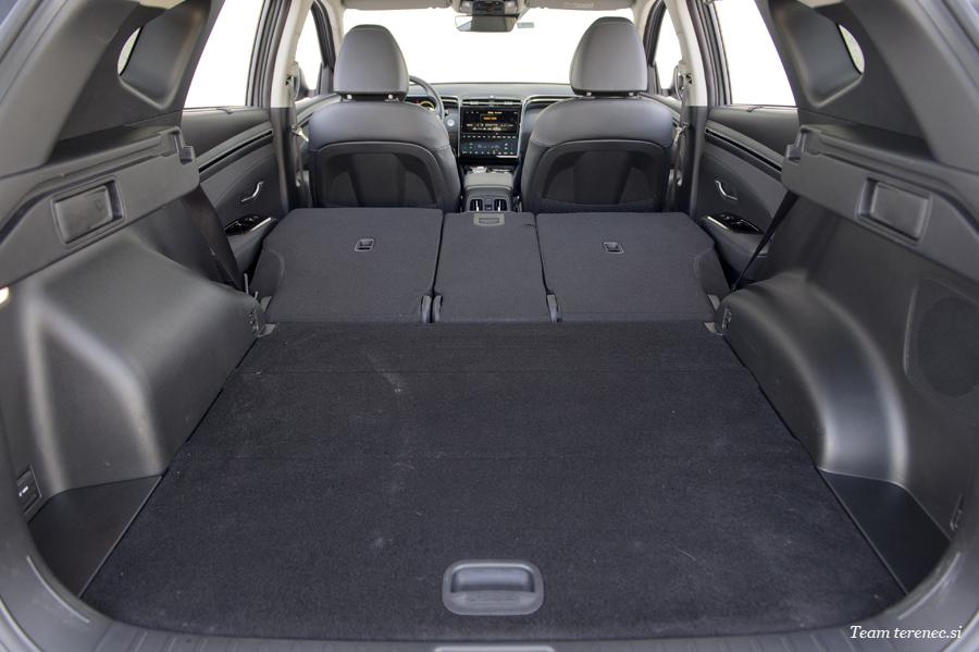 Prostora v novem Tucsonu je več, za potnike, kot tudi za njihovo prtljago. Zadnja klop je premična, razdeljena na tri dele 40:20:40 in omogoča več prilagajanja glede na potrebe potnikov. Prtljažnik je popolnoma raven, ima prostornino od 600 do 1.800 litrov, seveda je odvisno kako uporabljamo zadnjo klop. Pod prtljažnim dnom je še nekaj manjših odlagalnih mest.