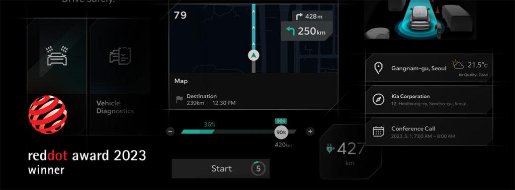 »Ki« Connected Car Navigation Cockpit, nagrajen v kategoriji Oblikovanje vmesnika in uporabniške izkušnje za informacijsko-zabavni sistem modela EV9
