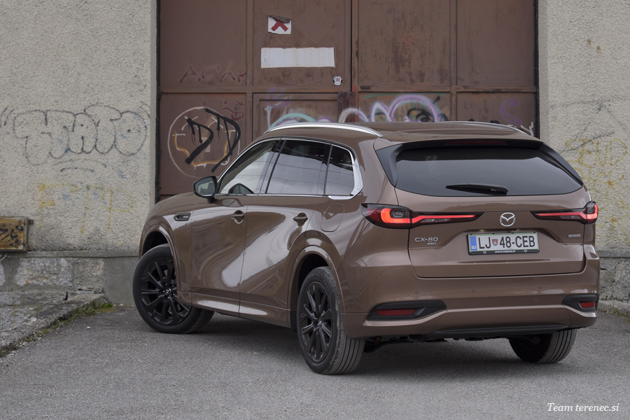 Mazda CX-80 je največji in eden najnovejših družinskih športnih terencev, ki prihaja iz Japonske. Namenjen je tako vsakodnevni družinski uporabi kot tudi daljšim potovanjem, ki s CX-80 postanejo res udobna in sproščujoča. Mazda CX-80 je premijski športni terenec, ki v notranjosti ponuja premijske materiale, brez čričkov in z obilico sodobne tehnologije. Ima tri vrste sedežev in zato lahko prevaža do sedem potnikov. Pod pokrovom motorja je zmogljiv šestvaljni dizelski motor prostornine 3,3 litra, ki kljub večji prostornini lahko stopi ob bok manjšim motorjem, ki imajo občutno manjšo zmogljivost ter podobno porabo goriva. Mazda CX-80 je športni terenec, ki bi si ga z veseljem želeli imeti v svoji garaži.