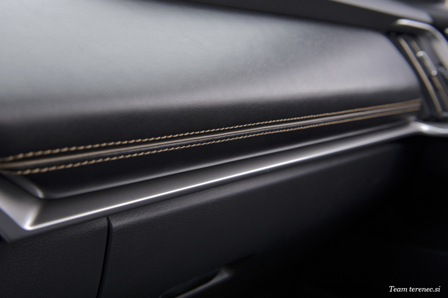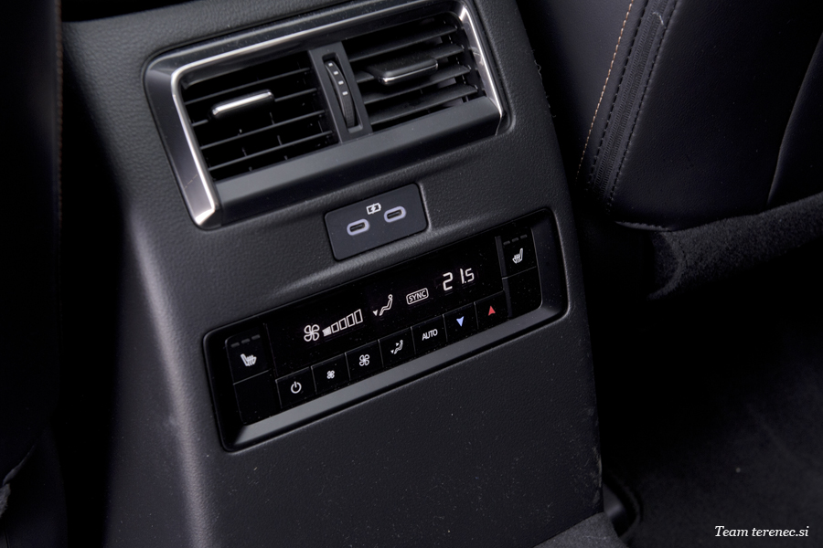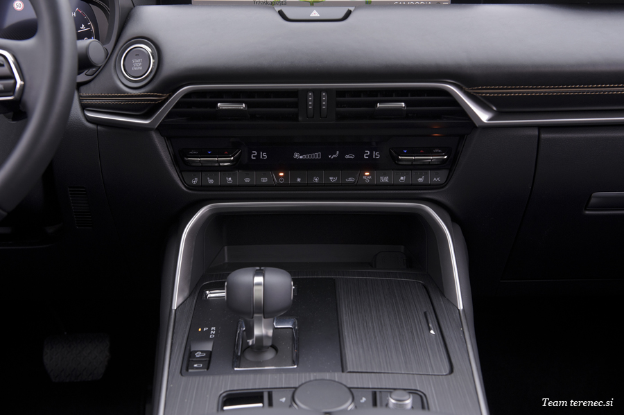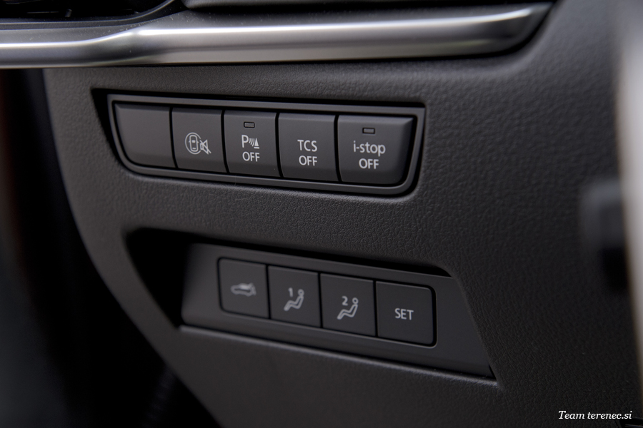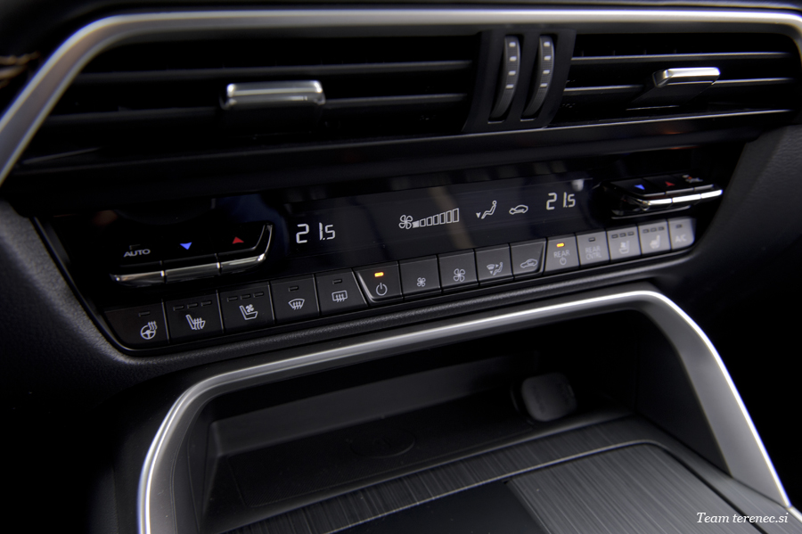 Voznikov položaj je zelo dober, okoli sebe ima dobro razporejene fizične gumbe, ki poskrbijo za enostavno uporabo. Sprednja sedeža so bila nastavljiva elektronsko v vse smeri, ogrevana in po potrebi hlajena. Sredinska konzola med sprednjima sedežema je širša kot običajno in nudi precej prostora za shranjevanje pod naslonom za roke. Na konzoli je vrtljiv gumb za enostavno upravljanje funkcij na zaslonu in s tem nam ni potrebno nenehno tapkati po zaslonu, saj lahko s vrtljivim gumbom in hitrimi gumbi načeloma vse naredimo.