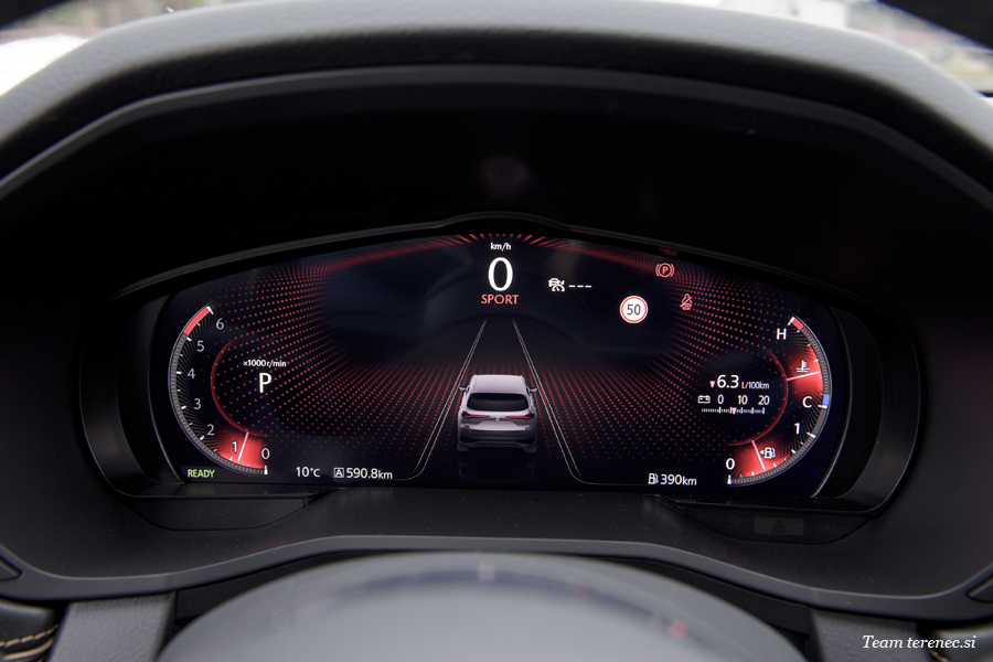 Glavni zaslon meri 12,3 palca, je dobre grafike, deluje tekoče in ga je lahko upravljati. Voznik spremlja vse svoje informacije na digitalnem zaslonu, ki si ga lahko nekoliko prilagaja kako bo izgledala sama grafika. Vse glavne informacije se prav tako projicirajo na vetrobransko steklo in s tem vozniku ni potrebno prekomerno umikati pogleda s cestišča. V drugi vrsti si lahko potnika ogrevata sedeža, nastavljata temperaturo in nastavljata naklon sedenja. Prostora je dovolj tudi za večje potnike. Tretja vrsta bo bolj kot ne primerna za mlajše potnike ali v sili za večje potnike na kratkih razdaljah.