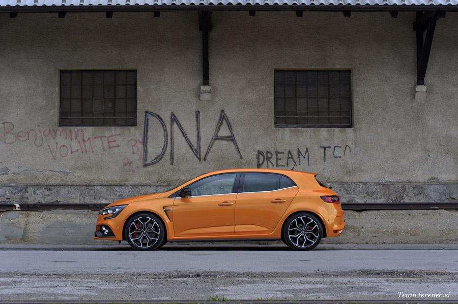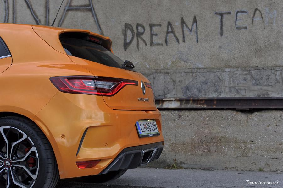 Megane R.S. tretje generacije na zunaj izgleda odlično in tudi barva se nam je precej dopadla. V primeru, da bi sami iskali takega športnika pa lahko zagotovo zatrdimo, da bi bili pripravljeni odšteti dodaten denar za barvo vozila in verjetno bi na seznam dodali še samodejni menjalnik z dvojno sklopko.