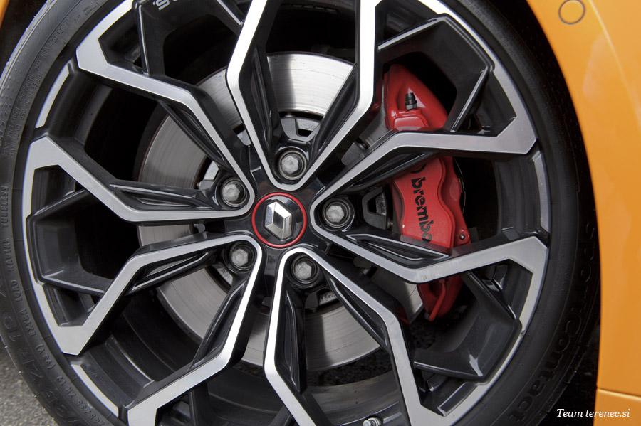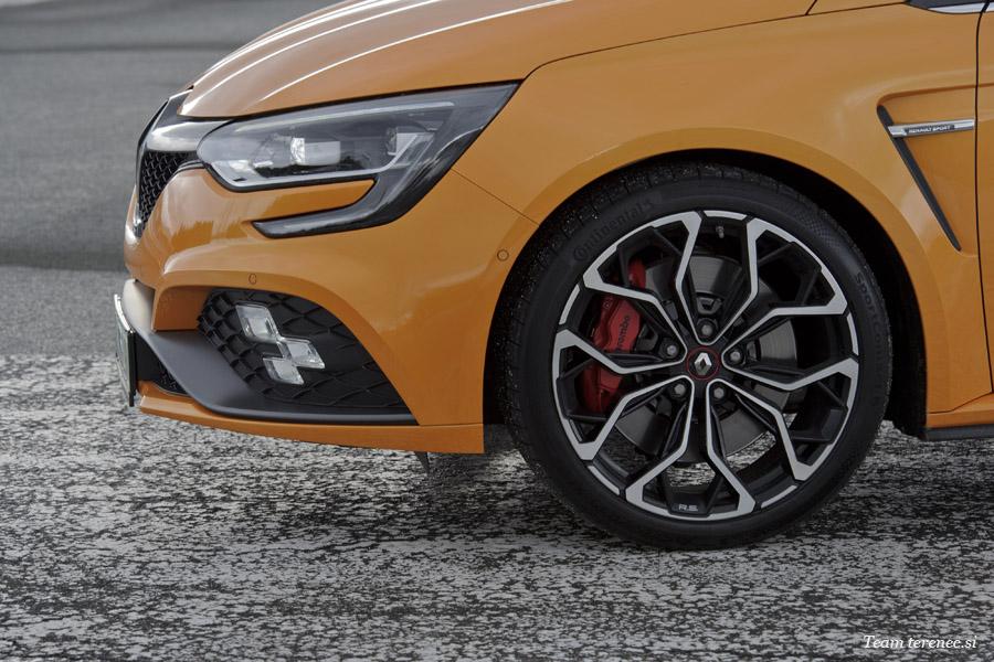Moč, navor se med kolesoma učinkovito porazdeli po potrebi in to zaradi sistema mehanske zapore diferenciala. Za hitro in varno ustavljanje so tu zavore znamke Brembo, ki nas niso nikoli razočarale. Po mestu ne smemo pozabiti na robnike, ker ima Megane zelo nizke pnevmatike in jih lahko mimogrede presekamo ali pa poškodujemo atraktivna platišča.