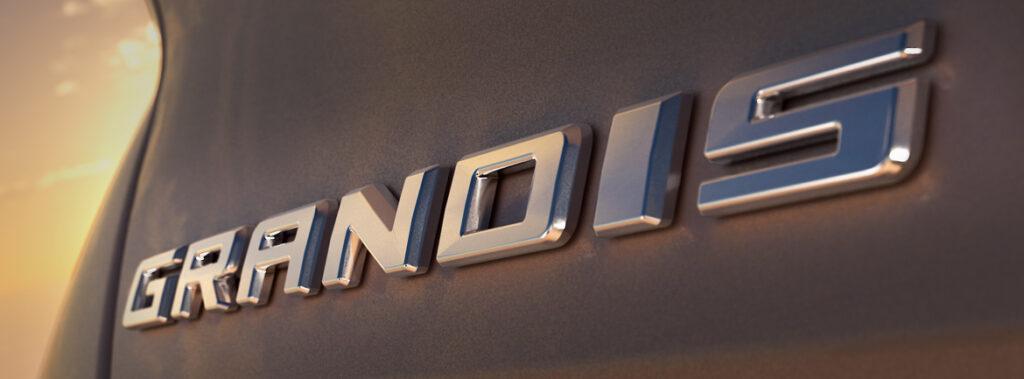 Ime Grandis, ki se navezuje na Mitsubishijev enoprostorec iz začetka 2000ih, je bilo izbrano iz latinske besede, ki pomeni „velik“ in „impresiven“, da bi odražalo velik notranji prostor in mogočno, samozavestno obliko s svežo iteracijo Mitsubishijevega značilnega sprednjega obraza „Dynamic Shield“ in oblikovne identitete zadnjega dela „Hexaguard Horizont“.