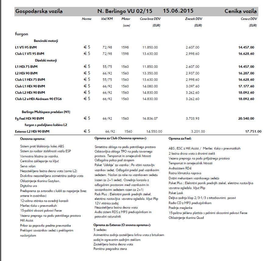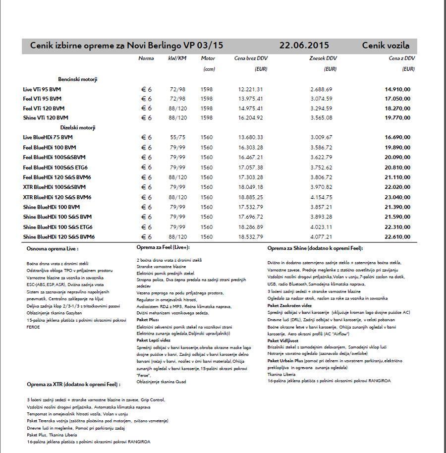 Različni dizelski motorji, s katerimi bo odslej opremljen novi Citroen Berlingo, dosegajo naslednjo porabo goriva in emisije CO2: