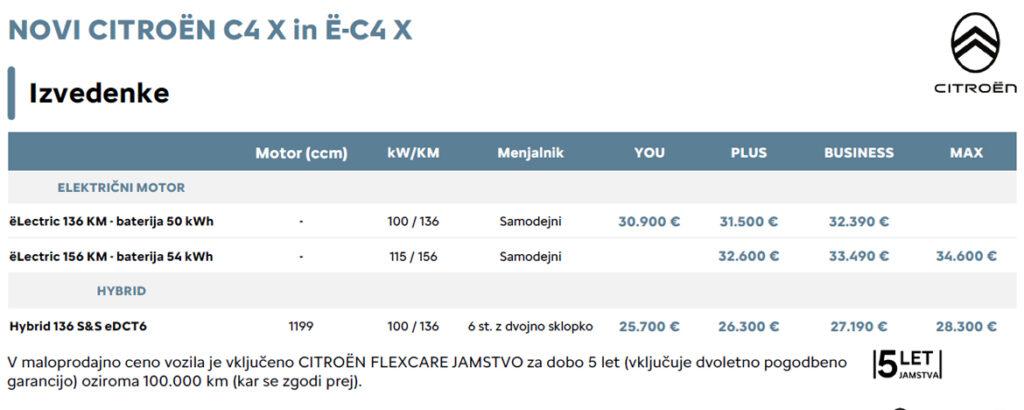 C4 je na trg vstopil leta 2020 in se je v letu 2024 v Sloveniji v C segmentu s prodajo 252 vozil uvrstil na 10 mesto, pri prodaji fizičnim strankam pa s prodajo 141 vozil na 6 mesto. Med vsemi prodanimi vozili C4 je bilo v lanskem letu 18 vozil prodanih z električnim motorjem, kar predstavlja 7,1% celotne prodaje vozila.