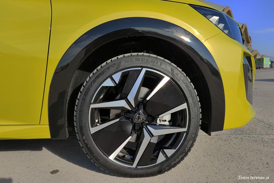 Nova platišča so eden ključnih elementov prenovljene oblikovne zasnove znamke Peugeot. Ta pristop, ki ga pri modelu 408 na primer ponazarja revolucionarna oblikovna zasnova platišč, je bil razširjen na vse nove modele znamke. Novi model E-208 je opremljen z različnimi povsem novimi tipi platišč iz lahke litine, ki so lahko 16-palčna (dvobarvna platišča NOMA z diamantno obdelavo) ali 17-palčna (dvobarvna platišča YANAKA z diamantno obdelavo in vstavki). Vsa platišča iz lahke litine so 4-kraka in imajo na sredini odtisnjen logotip Peugeot, ki tudi elegantno zakriva kolesne matice.