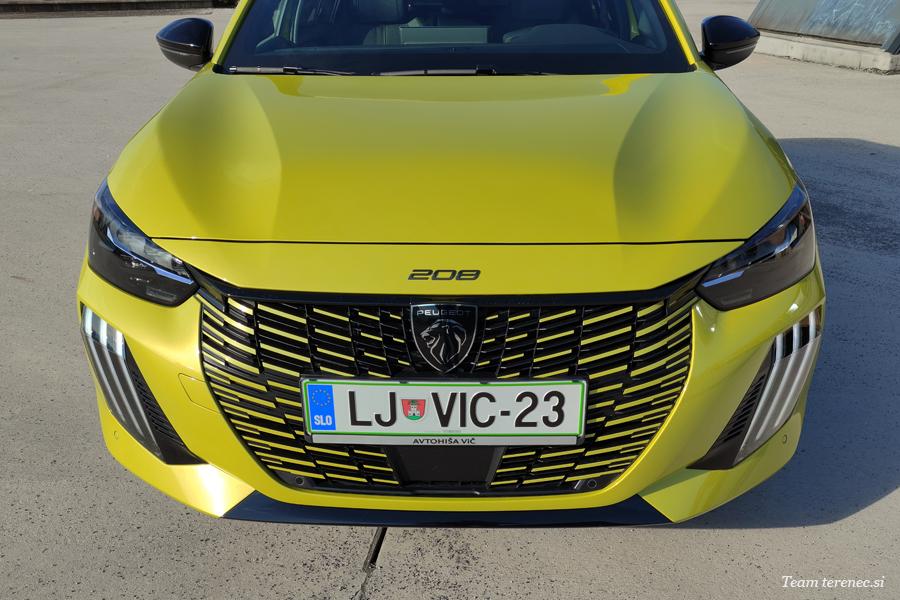 Novi svetlobni podpis so na prednjem delu pridobile vse izvedenke novega vozila 208. Pri izvedenkah GT je ta spektakularna osvetlitev še bolj izrazita: osupljivi učinek treh svetlobnih vodnikov v obliki levjih krempljev je razširjen na funkcijo osvetlitve žarometov »full LED« z uporabo treh ločenih optičnih modulov.