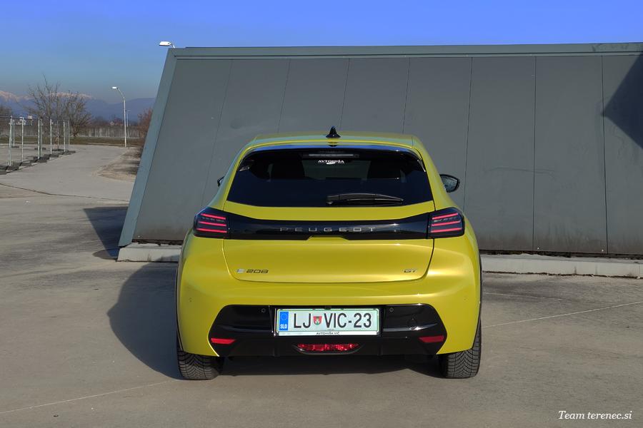Skupaj z novim vozilom E-208 je znamka prenovila svoj legendarni svetlobni podpis zadnjega dela, ki ga sestavljajo trije rdeči svetlobni vodniki v obliki levjih krempljev, nameščeni drug poleg drugega. Novi model ostaja zvest tem trem levjim krempljem, vendar so zdaj vodoravni. Sestavljajo jih trije elegantni svetlobni nizi LED diod, ki podaljšujejo črno okrasno letev prtljažnih vrat in dajejo vozilu bolj suveren pogled od zadaj, tako da je od zadaj videti širše. Pri izvedenki GT so tudi luči za vzvratno vožnjo in smerokazi na diode LED.