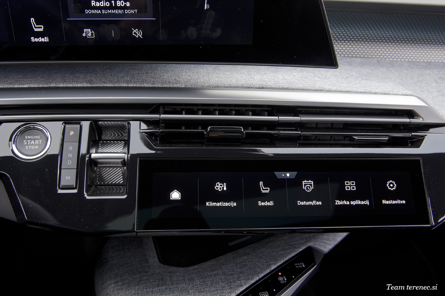 Ostali so štirje mehanski gumbi za vklop-izklop vozila, ročica za upravljanje menjalnika, elektronska zavora in gumb za izbiro voznega programa. Vse ostale gumbe so prestavili na osrednji zaslon oziroma na digitalno piano vrstico, ki si jo lahko prilagajamo po svojih željah. Omogočeno je, da imamo lahko deset bližnjic.