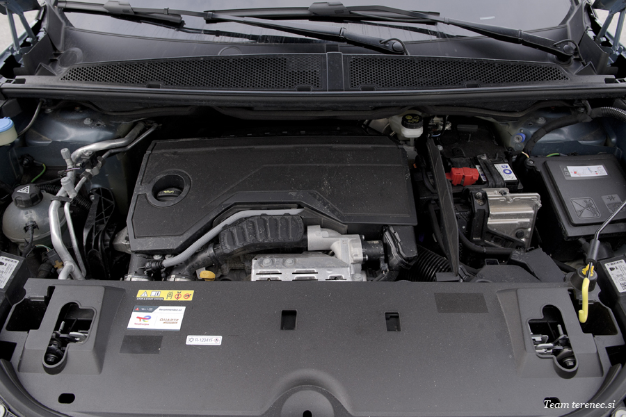 Dizelski motor je pri Peugeotu že zgodovina, saj že nekaj časa ponujajo le bencinske v povezavi hibridne tehnologije, priključni hibrid ali pa popolnoma električno izvedenko. Mi smo lahko preizkusili hibridno 5008-co, ki je imela skupaj 145 konjev. Bencinski motor prostornine 1,2-litra ima 136 konjev in elektromotor 29 konjev. Navor klasičnega motorja znaša 230 Nm pri 1.750 vrtljajih in elektromotorja pa od 51 do 750 Nm pri 2.499 vrtljajev na minuto. Hibridni ima šeststopenjski samodejni menjalnik (e-DCT), priključni hibrid pa sedem stopenjskega. Dodatno vgrajena baterija za elektromotor ima kapacitete 0,4 kWh, ki pripomore pri speljevanju in krajši čas vožnje na električni pogon.