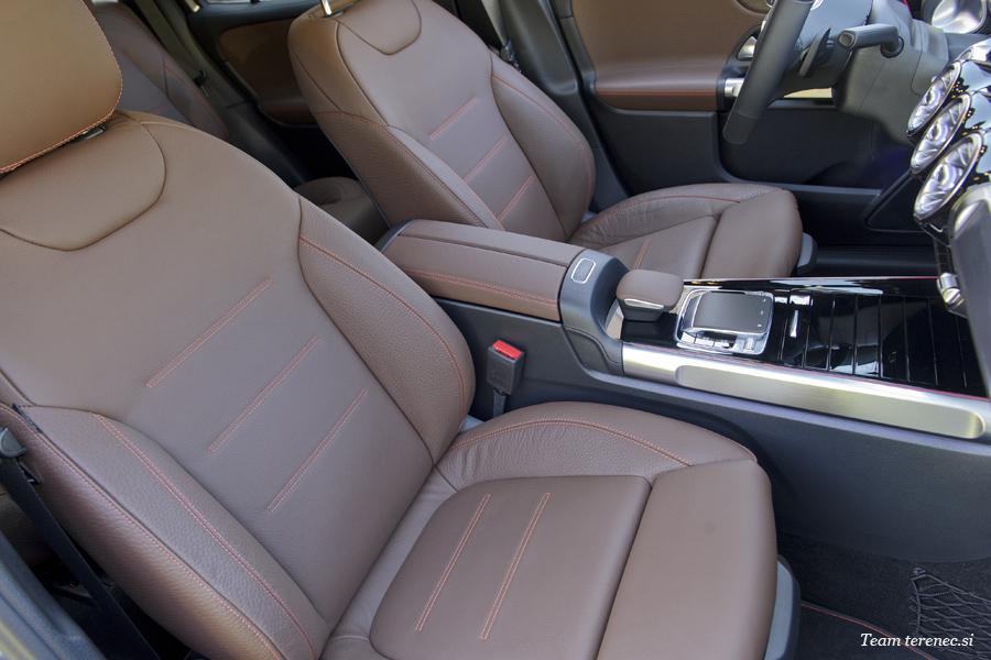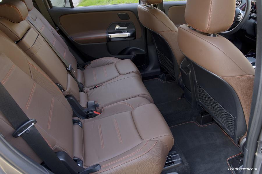 GLB je prvo kompaktno vozilo družbe Mercedes-Benz, ki po želji nudi tretjo vrsto sedežev z dvema dodatnima posameznima sedežema. Sedeža ljudem do višine 1,68 metra nudita udobje prostora. Obsežna varnostna oprema vključuje raztegljive vzglavnike, varnostne pasove z napenjalniki jermenov in zatezniki, zračno zaveso za stranska stekla, ki varuje tudi potnike v tretji vrsti sedežev, ter sidrišča ISOFIX in TOP-Tether za ustrezne otroške sedeže. Ta se lahko uporabijo za pritrditev do štirih otroških sedežev v drugi in tretji vrsti.