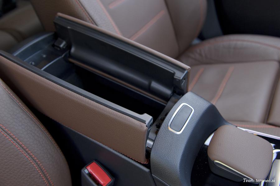 Robustni značaj notranjosti se nadaljuje v sredinski konzoli. Cevasti elementi v strojno obdelanem videzu dajejo obliki komponent in kontrolnih gumbov pridih trdnosti. Vzdolž vrat je značaj športnega terenskega vozila poudarjen z vodoravnim ročajem, ki se vse od zasnove in različice opreme Progressive odločno zliva s celostno zasnovo in je podoben strojno obdelani aluminijasti cevi.