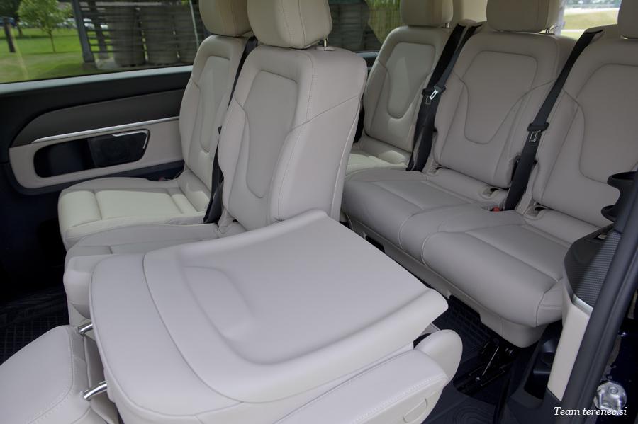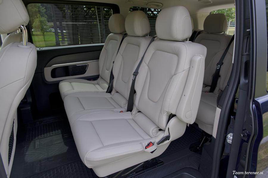 Posodobitev zajema tudi poseben element udobja za potnike na zadnjih sedežih. Podobno kot v razredu S, luksuzni sedeži za prvo vrsto zadnjih sedežev iz sklopa dodatne opreme razvajajo s funkcijami nagiba in masaže ter klimatizacije. Tako je vožnja v prenovljenem razredu V – npr. če se uporablja za posebne prevoze – sproščujoča in blagodejna.