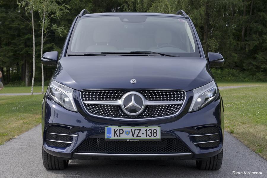 Oblikovna privlačnost in profil vrednot razreda V sta v tem segmentu prvovrstna. Oblikovalci v Stuttgartu so s serijo usmerjenih ukrepov oblikovali novo podobo enoprostorskega vozila, ki sledi izraznemu jeziku aktualnih osebnih vozil Mercedes-Benz. Prenovljeni razred V ima zaradi novega sprednjega dela širšo postavo in še močnejšo vizualno navzočnost. To je rezultat nove oblike odbijača z osupljivimi režami za dovod hladilnega zraka in nove diamantne strukture maske hladilnika. Mercedesova zvezda je postavljena sredinsko na maski hladilnika in obrobljena z dvema srebrnima letvicama. Koncept individualnega prilagajanja s privlačnima linijama AVANTGARDE in EXCLUSIVE ter številnimi oblikovnimi paketi ostaja, pri tem pa s preobrazbo linija AMG postaja vizualno osupljivejša: vključuje namreč novo masko hladilnika v obliki diamanta s kromirano mrežo in tako izriše posebej športni poudarek.