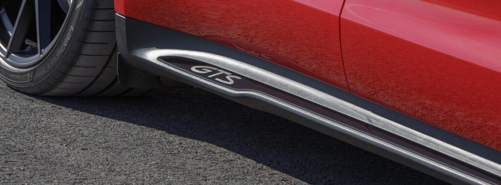 Prilagodljivo zračno vzmetenje vklj. s sistemom Porsche Active Suspension Management (PASM) je prilagojeno posebej za modele GTS. To koristi prečni dinamiki. Tudi opcijsko krmiljenje zadnje preme ima še bolj športno nastavitev. Bolj kleni zvok modificiranega sistema za zvok električnega športnega avtomobila