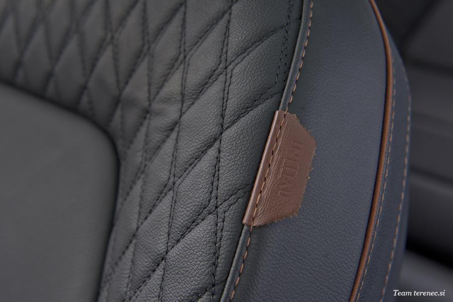 Sredinska konzola med sedežema je precej futuristična z namenskim prostorom za brezžično polnjenje pametnih telefonov, pod naslonom za roke pa se nahaja še nekaj odlagalnega prostora. Sedalni del prednjih sedežev so povečali za 15 milimetrov kar naj bi prispevalo k večjemu udobju. Strešni del je oblečen v črno blago, za svetlejšo notranjost pa poskrbi strešno okno, ki ga odpremo po potrebi. Za odličen zvok poskrbi 9 zvočnikov z ojačevalnikom znamke Bose.
