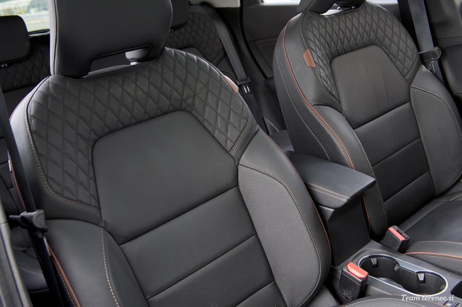 Notranjost prinaša veliko novosti in sprememb, predvsem pa je postala zelo premijska. Armaturi so dodali nove prezračevalne šobe, na sredini se nahaja popolnoma nov, pokončni zaslon, ki je v svojem razredu največji. Zaslon je dobre ločljivosti, meniji so slovenski in so enostavni za uporabo. Pod zaslonom se nahaja »klavirska« tipkovnica, saj so ohranili glavne gumbe za upravljanje različnih sistemov. Nekoliko nižje so nameščeni še okrogli gumbi, ki smo jih prvič spoznali pri novemu Dusterju. Nameščen je Aux-In in dva USB priključka za polnjenje pametnih telefonov ali za poslušanje svoje priljubljene glasbe. Sedeže, armaturo in del vrat so oblekli v usnje obrobljeno z oranžnimi šivi, s čimer so dosegli zelo eleganten videz. Voznikov in sovoznikov sedež sta zelo udobna in poskrbita za veliko mero udobja. Na vratih je nekaj prostora za odlaganje manjših predmetov, pred sovoznikom pa je velik predal, ki je izvlečni in je največji od vseh znamk.