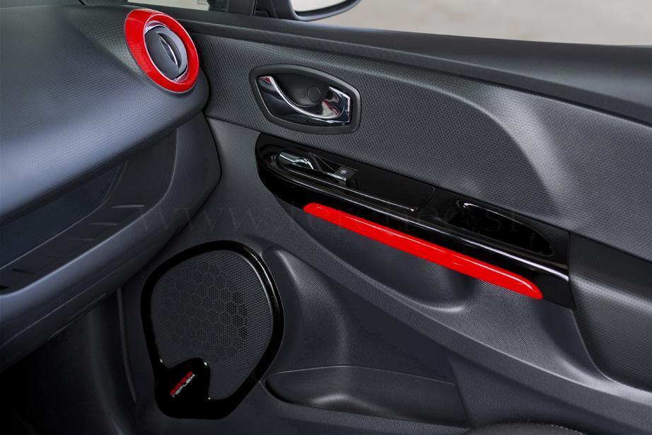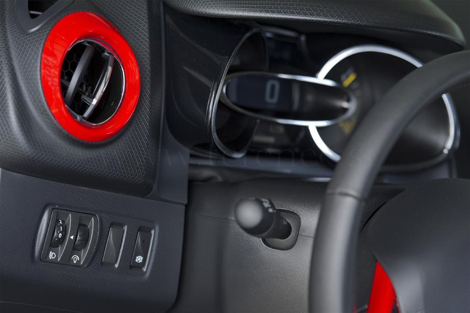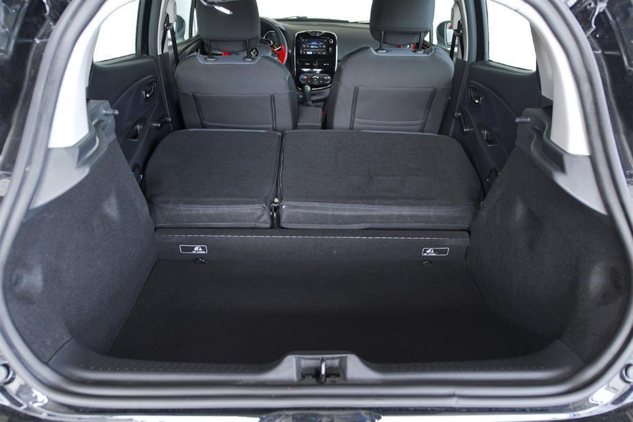 V našem testnem Cliu so bili v notranjosti vsi dodatki v rdeči barvi – obroba menjalnika, spodnji del volanskega obroča, obrobe stranskih zračnikov in obroba na vratih pri naslonu za roke. Odlagalnih mest v Cliu ni veliko. Manjša odlagalna mesta lahko najdemo na stranskih vratih, v sredinskemu naslonu za roko, nekoliko več prostora pa je v predalu pred sovoznikom, v velikosti sedmih litrov.
