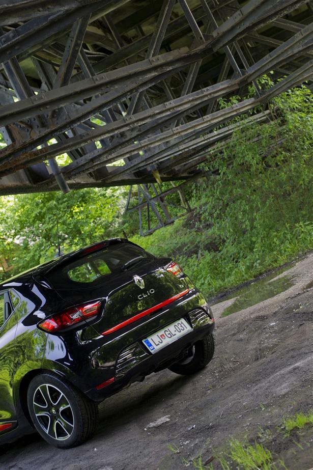 Četrta generacija Clia je širša od svojih prednikov. Prav tako je lažja za 100 kilogramov, kar precej pripomore pri manjši porabi goriva. Za boljše vozne lastnosti Clia so poskrbeli z nekoliko tršim vzmetenjem. Osi so razširili za 34 mm, medosno razdaljo za 15 mm, hkrati pa so jo znižali še za 45 mm. Novi Clio je zelo stabilen na cesti. Na testu je po ovinkasti cesti čez Ljubelj hitro odgnal morebitne pomisleke, da jih ne bo speljal. Krmiljenje je neposredno in natančno, a mu ne bi škodilo malce več teže, da bi na svoj račun prišli tudi malce bolj entuziastični vozniki. Kljub temu pa nam Clio ponuja veliko zabave v vožnji, tako za mlade in nekoliko starejše voznike.
