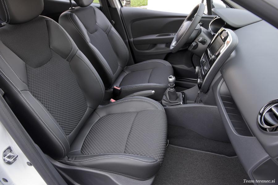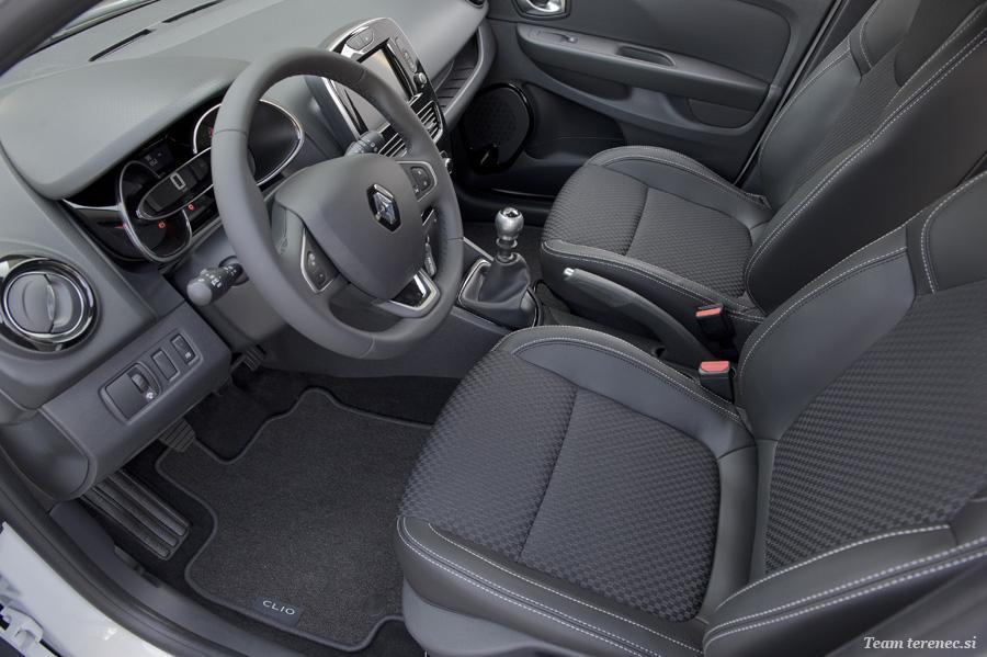 Novi Clio je pridobil z uporabo materialov iz Renaultovih modelov višjega razreda. Zrnate plastične površine so lepše na pogled in prijetnejše na otip, kromasti dodatki so bolj prefinjeni in se manj bleščijo, barve v notranjosti pa so še bolj skrbno izbrane. V celoti je novi Clio bolj zrel in ponuja skladnejšo zmes zunanje zapeljivosti in kakovostno urejene in izdelane notranjosti.