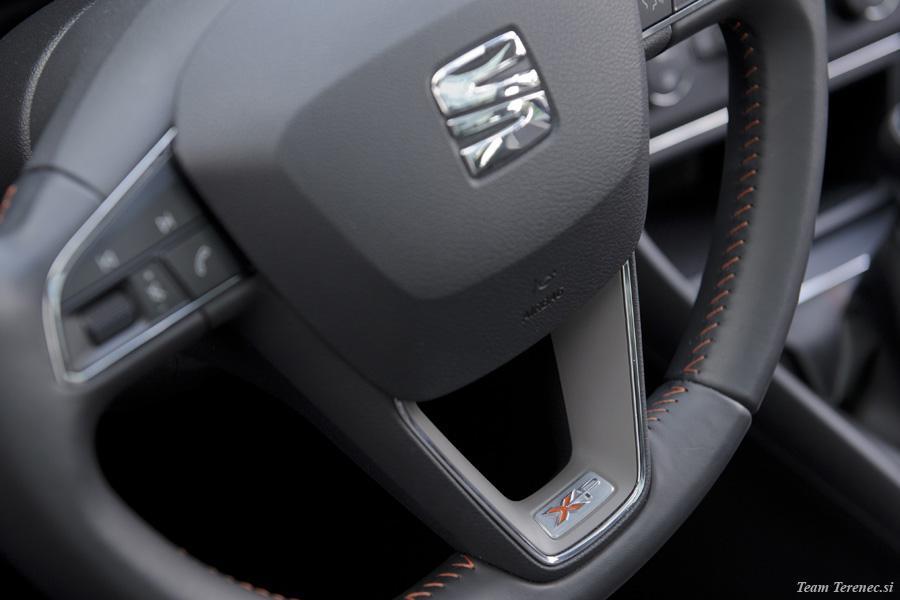 Krmiljenje je lahko, morda za nas še malce preveč, vendar nudi vozniku dovolj povratnih informacij. Vzmetenje je prav tako bolj mehko, kar se občuti pri bolj dinamični vožnji po ovinkih, kjer se karoserija bolj nagiba. Na daljših potovanjih je vožnja udobna in sproščena. Za malenkost primanjkuje zvočne izolacije med motorjem in potniško kabino. Leon X-Perience ima za 15 mm višje podvozje od svojega brata.