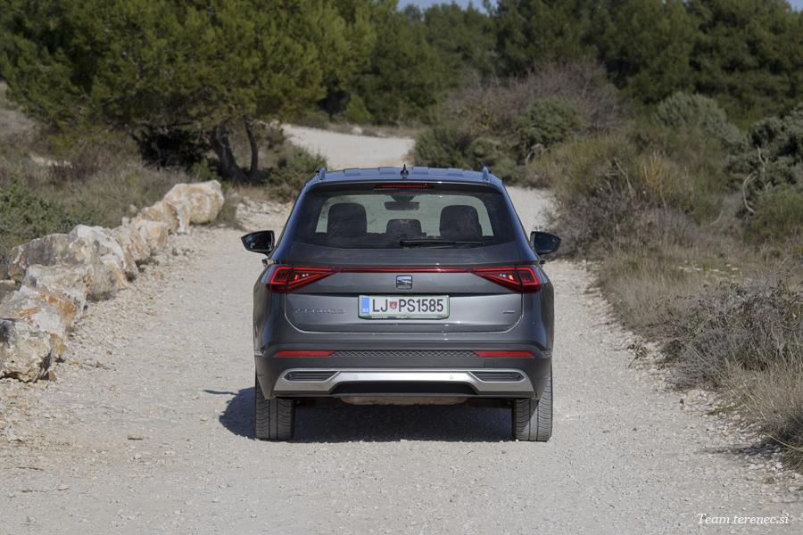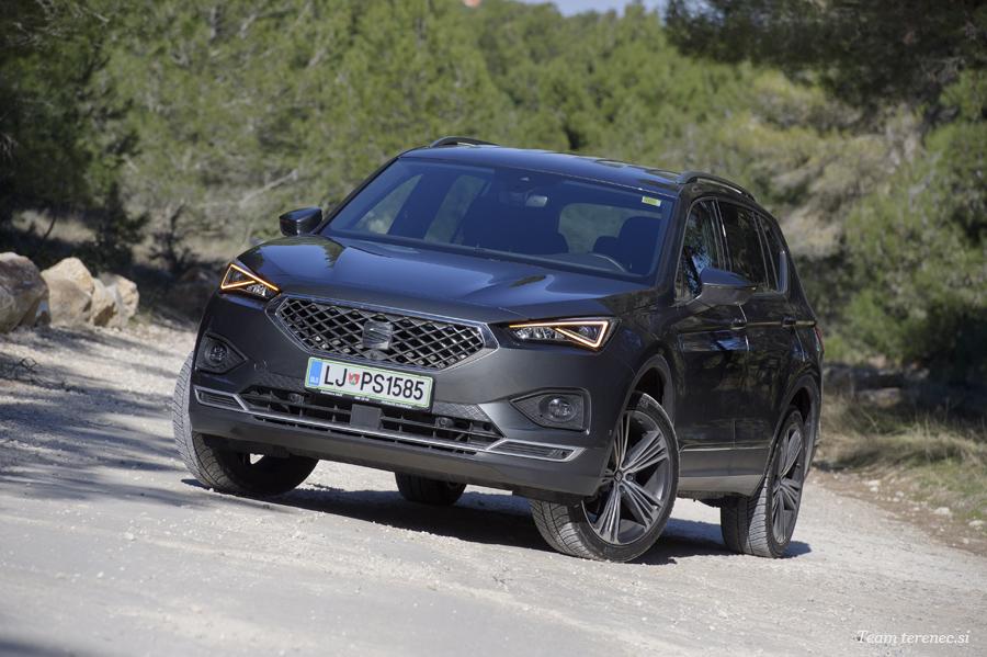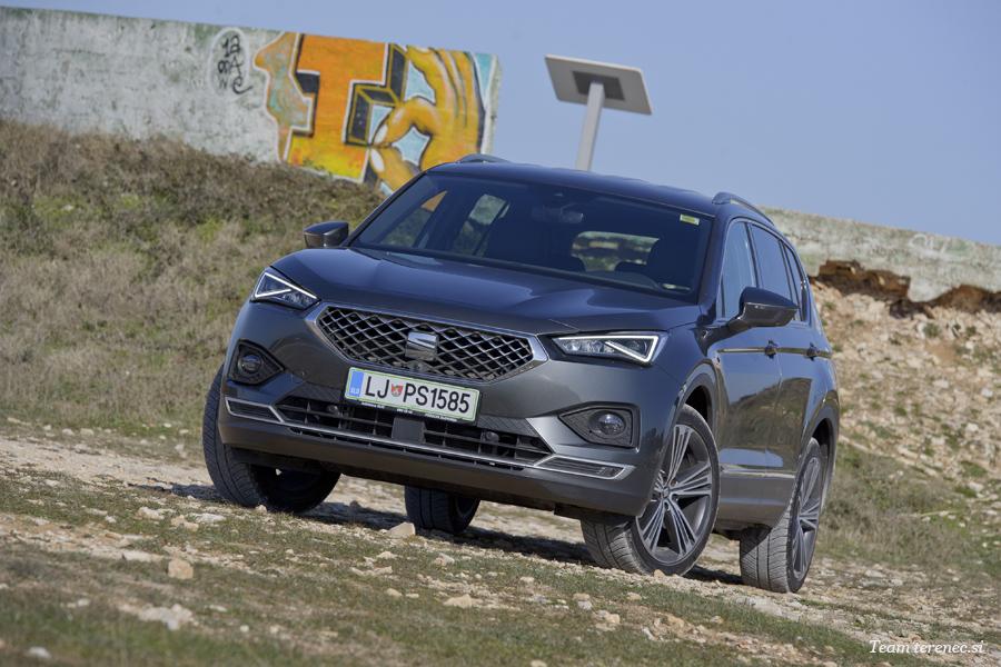 Tarraco je velik športni terenec, ima štirikolesni pogon in za povrh še sistem za izbiro voznega programa. Voznik lahko tako izbira med programi Comfort, Sport, Eco, Individual, Off-Road in Snow. Športni terenec, ki je obut v velika 20-palčna platišča, bo verjetno večino svoje življenjske dobe preživel le na asfaltiranih cestah. Tarraca smo imeli na testu zadnji vikend pred zaprtjem meje zaradi virusa Covid-19. S tem smo lahko izkoristili še zadnjo vožnjo po Kamenjaku. Tarraco je od tal oddaljen 20 centimetrov, kar ni tako malo, a tu se izkaže šibka točka velikih platišč, saj je vozilo kljub zelo počasni vožnji pošteno poskakovalo. Štirikolesni pogon bo prav prišel v zimskem času, mokrih pogojih in pri športni vožnji, saj bomo zaradi njega vozili varneje in bolj suvereno.