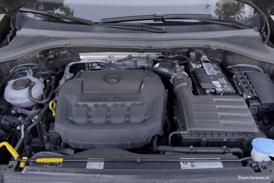 Veliki Tarraco je imel bencinski štirivaljnik EcoTSI prostornine 2.0 litra. S sodobno tehnologijo so dosegli, da ima motor pri 1.450 vrtljajih na voljo vseh 320 Nm navora. Motor lepo teče in 190 »konjev« pripomore k poskočnosti. Seat, Škoda, Volkswagen, Audi spadajo pod »isto streho« in s tem izkoriščajo skupne tehnologije oz. običajno jo Seat in Škoda podedujeta od Volkswagna. Tarraco ima samodejni 7-stopenjski menjalnik DSG, ki opravlja svoje delo brez pripomb. Pri masi 1.808 kg, velikosti vozila in velikih platiščih ne gre spregledati dejstva, da kljub vsemu ne porabi veliko goriva, razen če se prestavi način vožnje v Sport, ko se poraba dvigne tudi na 10 litrov. V normalnih razmerah se je poraba na testu gibala med 7,5 in 8,3 lit na sto kilometrov.