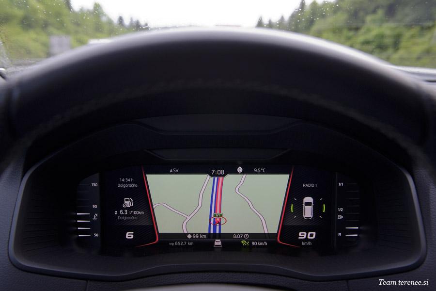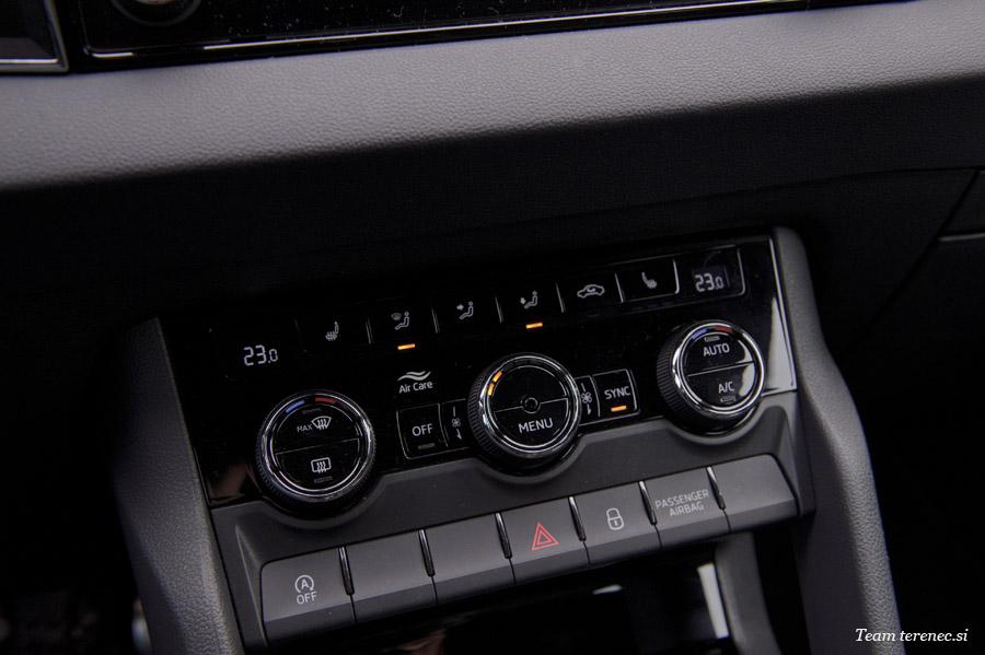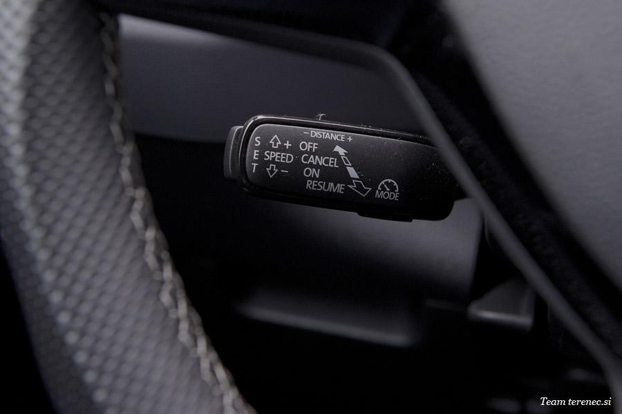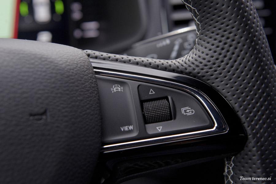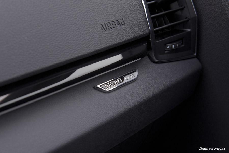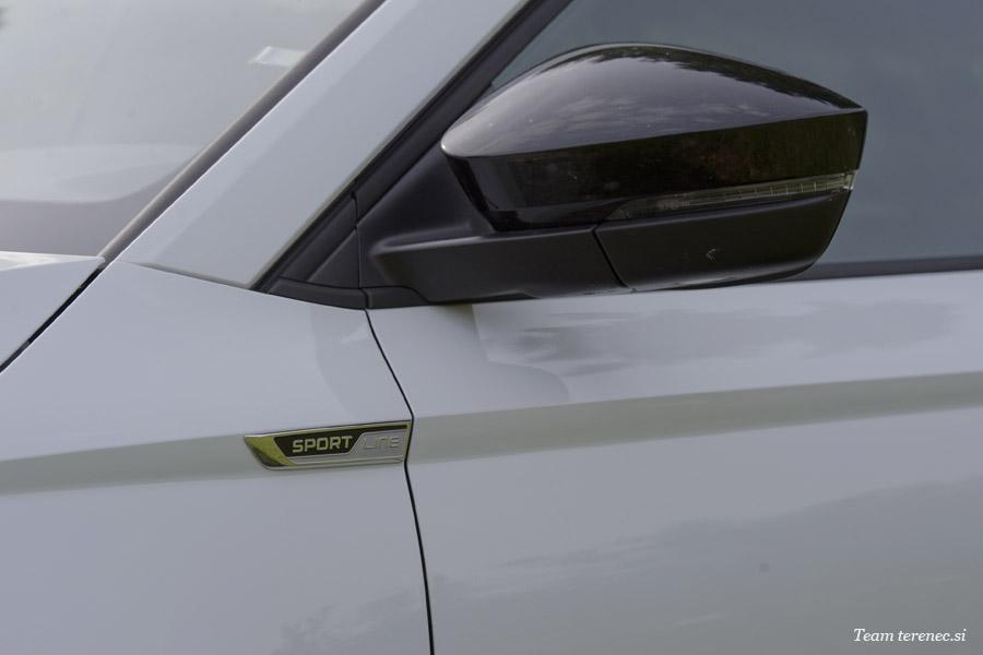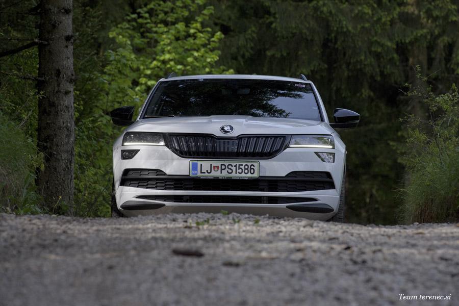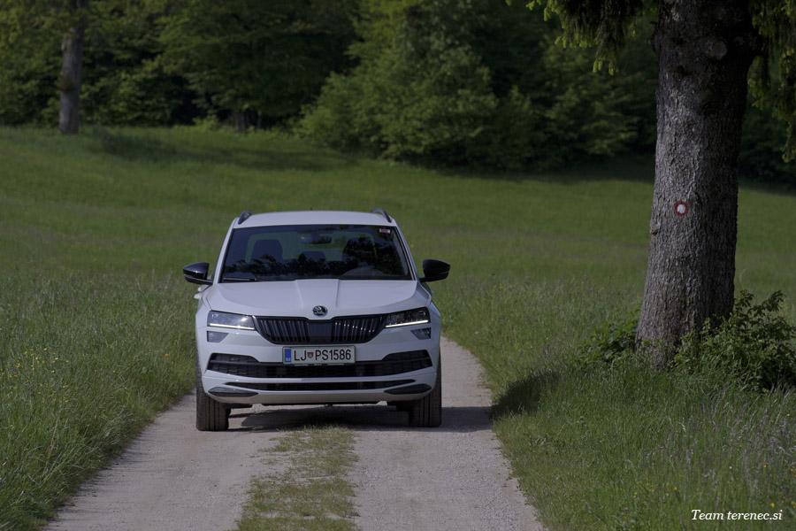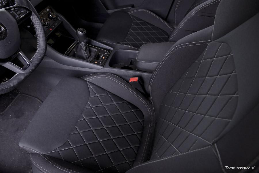 Karoq je zaradi verzije Sportline precej opremljen in ima že serijsko vgrajene veliko dodatne opreme. Našemu modelu so dodali še vzvratno kamero in aktivni tempomat, ki deluje do 160km/h.