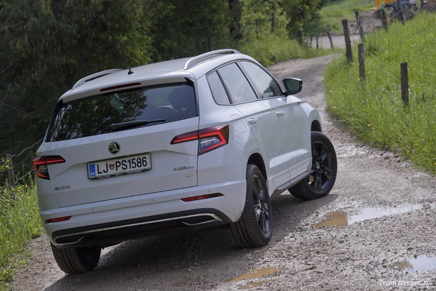 Dan danes vse znamke stavijo na lepoto in velika lahka platišča, a vse to terja tudi svoj davek pri udobju. Škoda Karoq ima navkljub 18-palčnim platiščem še dovolj tolerance do udarnih jam in potnikov v potniški kabini. Po cesti in avtocesti se pelje gladko in po trdoti je nekje v zlati sredini med svojimi konkurenti. Karoq je na dolgem potovanju dober in udoben spremljevalec.