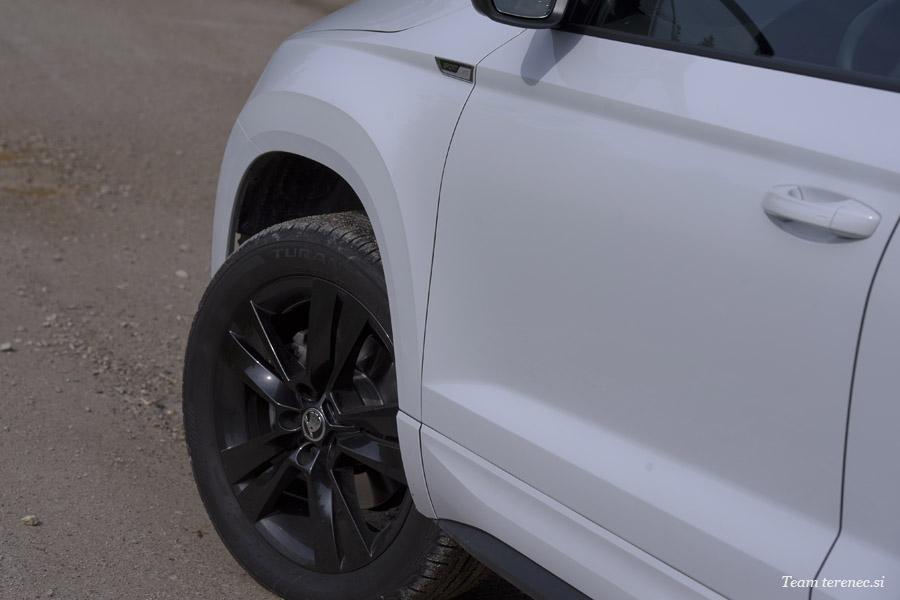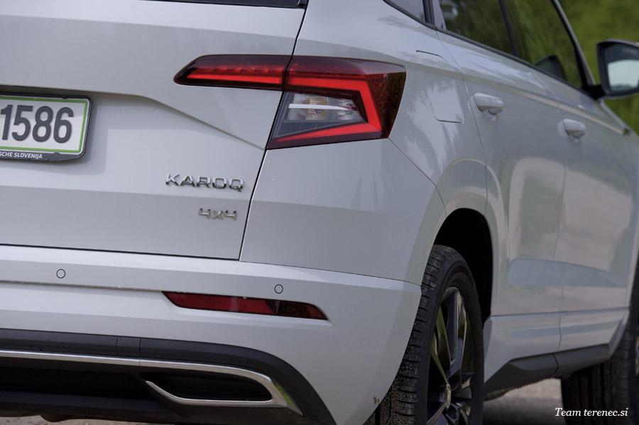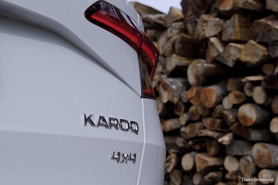 Čehi so popolnoma posodobili svoj vozni park in oblikovno dozoreli. Karoq je postal njihov športni mestni terenec za vse generacije. Sprednji del nakazuje na športnost, bočna linija vse skupaj umiri in zadek ponazarja prijaznost do družin. Karoq meri v dolžino 4,38 metra, od tal je oddaljen 17 cm in obut je v 18-palčna lahka platišča. Z njim gremo z lahkoto tudi po kakšnem brezpotju, a roko na srce, takih lastnikov je bolj malo. Prednje in zadnje luči so v LED tehnologiji. Prednje so klasične ravne oblike, zadnje pa sodobno oblikovane v črki C. Za karoserijo so pripravili 14 različnih barv.
